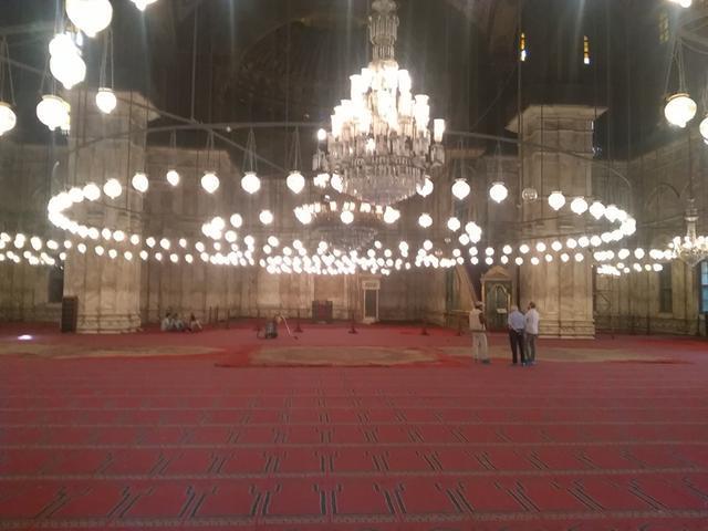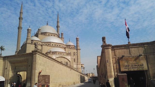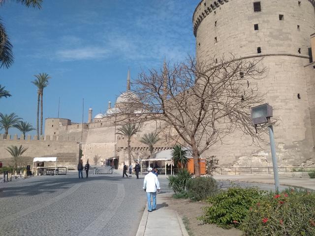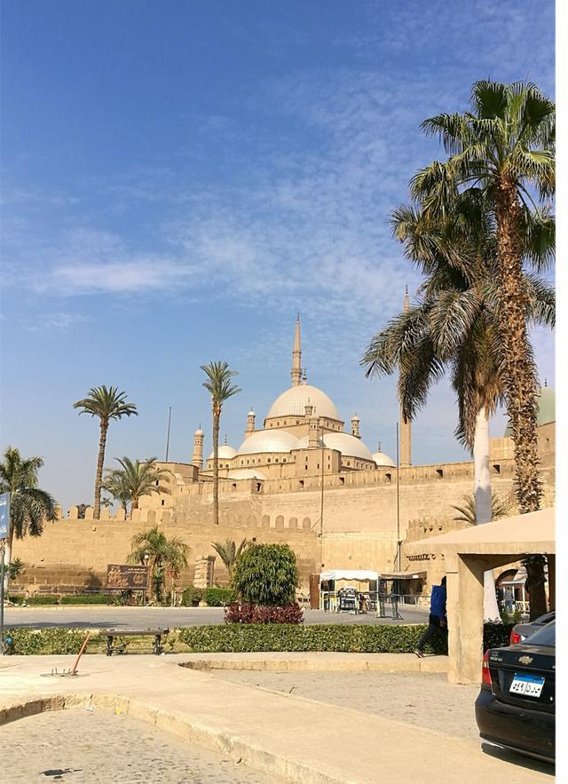 阿里寺的尖塔,像一把利剑高耸入云,巨大的圆顶在阳光下熠熠生辉。自公元640年起,埃及由阿拉伯帝国占领,结束了古希腊、罗马帝国近千年的统治,10世纪期间,埃及法蒂玛王朝国势强盛,疆域广大,包括了阿拉伯半岛及小亚细亚,影响了罗马教皇基督教东扩,基督教徒到圣城耶路撒冷朝圣都非常困难。1095年,罗马教皇召集宗教大会,鼓动基督教徒消灭东方,夺回“圣地”耶路撒冷。从第二年起,200年间,教皇总共发起八次“十字军圣战”。1164年至1169年,埃及被十字军占领。伊拉克萨拉丁进军埃及,击退十字军,保全了开罗。1171年,萨拉丁废黜法蒂玛王朝哈里发,建立阿尤布王朝,自任第一任“苏丹”,建“萨拉丁城堡”并把王宫搬进了城堡,所以,这个城堡是阿尤布王朝的皇宫。