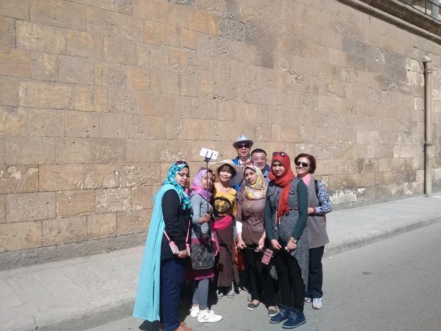 一群埃及的女学生,看见我们这几个中国人很亲热,纷纷拥上来拍照。埃及虽然号称七千年的古老文明,但埃及古老文化抵挡不住历史上的侵略者。公元前526年,大约相当于中国春秋战国时期,波斯王冈比西斯统军攻入北非,陷埃及国都底比斯城,波斯王冈比西斯将自己加冕为埃及法老,建立于公元前1580年的埃及帝国灭亡。