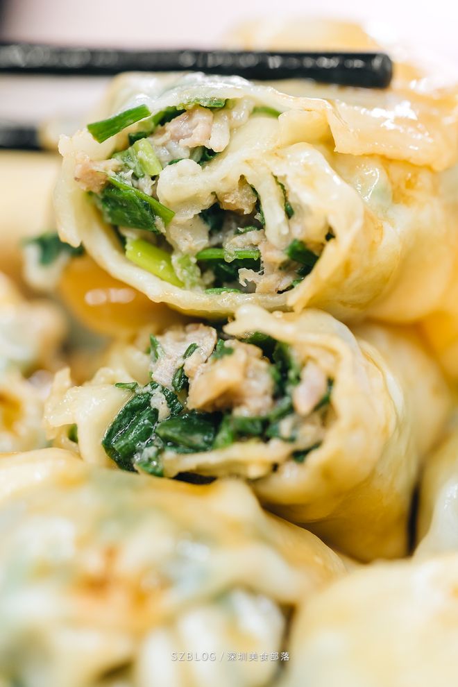 肠粉韭菜卷”是这里的特色招牌,在其他炸货店很少见,我每次来都必点。最喜欢它的口感:外层肠粉炸得酥脆焦香,而最里层的肠粉依然保持着软糯口感,裹着清香的韭菜,一口下去层次丰富,满口生香。
